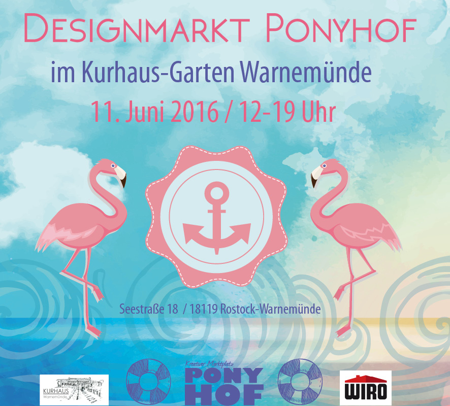 Unter dem Motto „Sommer, Sonne, Ponyhof“ findet am Sonnabend, den 11. Juni von 12.00 bis 19.00 Uhr, im Warnemünder Kurhausgarten ein Kunst- und Designmarkt für alle kreativen Köpfe statt. Bereits zum fünften Mal präsentieren Künstler aus allen Sparten ihr Repertoire: Mode, Malerei, Schmuck, Literatur… Das Thema „Tropical Island“ soll sich in den Werken widerspiegeln. Über 60 Kunstliebhaber und -schöpfer aus ganz Deutschland freuen sich auf einen Austausch mit Gleichgesinnten bei schönstem Strandwetter.