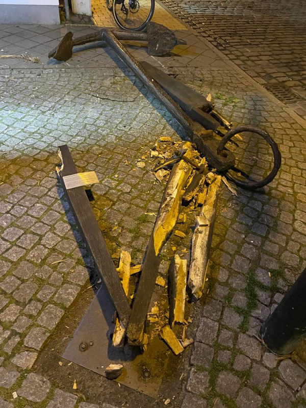 „Für uns war es ein richtiger Schock, den Stock des historischen Ankers in scheinbar 1.000 Teile zersplittert am Boden liegen zu sehen“, gesteht Uwe Heimhardt. Dieser hat inzwischen Kontakt zur BQG aufgenommen, deren Mitarbeiter sich den Anker angeschaut haben. Sie sehen eine Möglichkeit, aus einem, aus dem 18. Jahrhundert stammenden, Stück Holz eine originalgetreue Nachbildung des Stocks zu fertigen. Die Restaurierung wird teurer als gedacht. Fast 3.000 Euro sind veranschlagt. „Wir hoffen natürlich, dass die Versicherung des Verursachers die Kosten trägt“, gibt sich der Vereinsvorsitzende optimistisch.