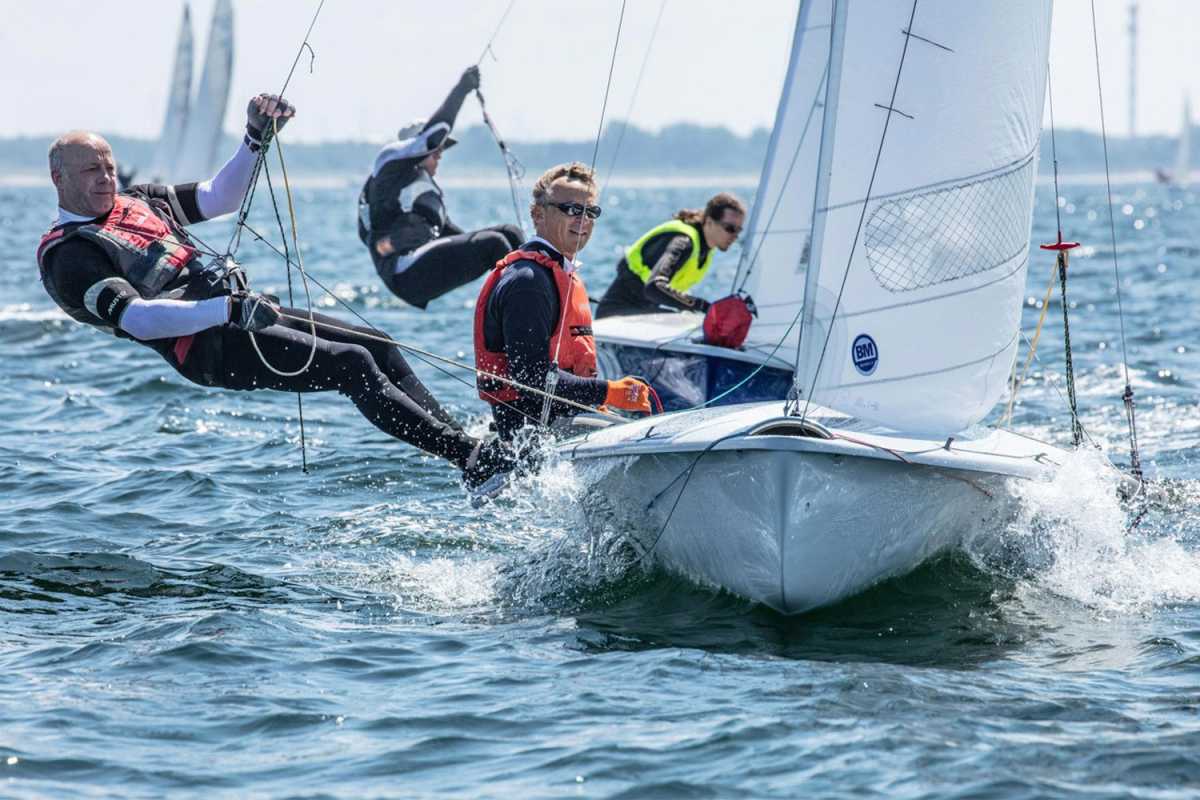 Zweiter Tag für die 505er: Wenn nach bislang sechs Wettfahrten der potenzielle Streicher ein zweiter Platz ist, dann spricht das für die Konstanz von Wolfgang Hunger und Holger Jess. Nach drei ersten Plätzen gestern, lieferten die 505er-Legenden gestern drei zweite Plätze ab. Eine Wettfahrt gewannen Jan-Philipp Hofmann und Felix Brockerhoff vom Düsseldorfer Yacht-Club und liegen damit nach wie vor auf Platz zwei. Die dritte Wettfahrt des Tages entschieden die Franzosen Philippe Boite und Marin Carnot für sich und belegen damit den Platz hinter den Drittplatzierten Lena Stückl/Johannes Tellen vom Deutschen Touring Yacht-Club. Insgesamt nehmen 44 Crews an der Deutschen Meisterschaft der 505er teil.